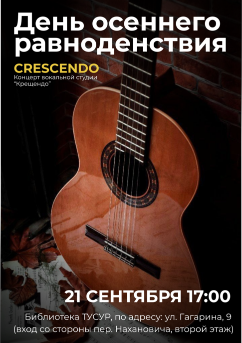 Библиотека ТУСУР приглашает студентов, сотрудников и всех любителей музыки на концерт вокальной студии «Крещендо», который пройдет в атмосфере теплой осени и живого общения.