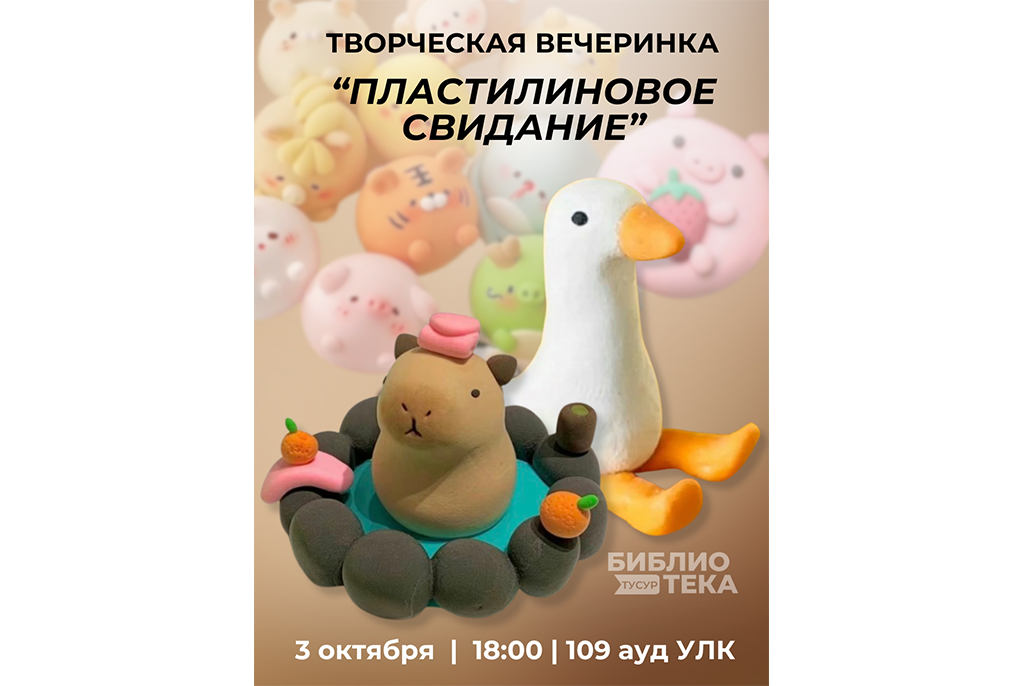 3 октября в 18:00 в 109 ауд. УЛК (Библиотека ТУСУР) участники будут работать с воздушным пластилином — лёгким и мягким материалом, который подходит даже тем, кто никогда не занимался лепкой.